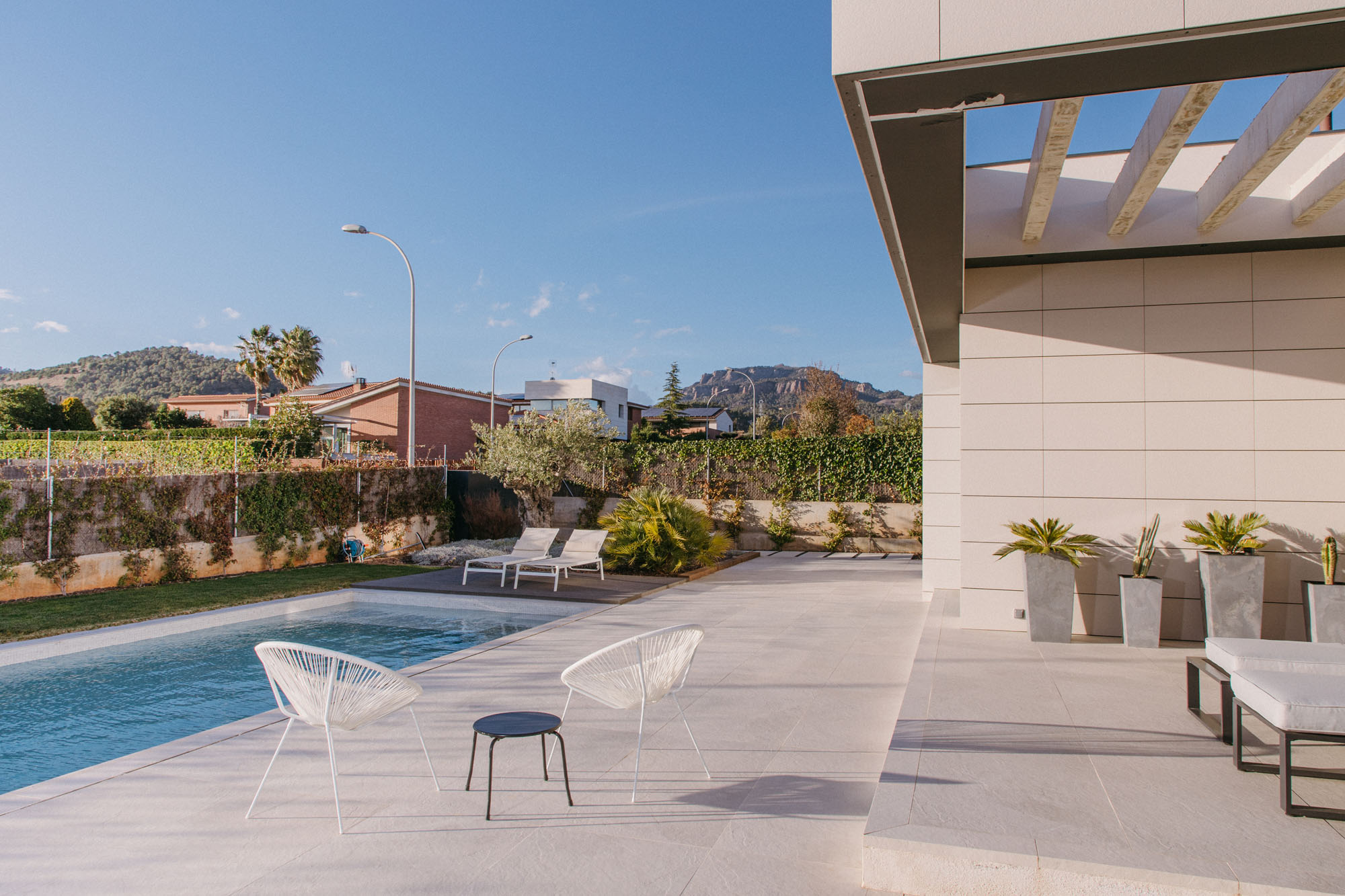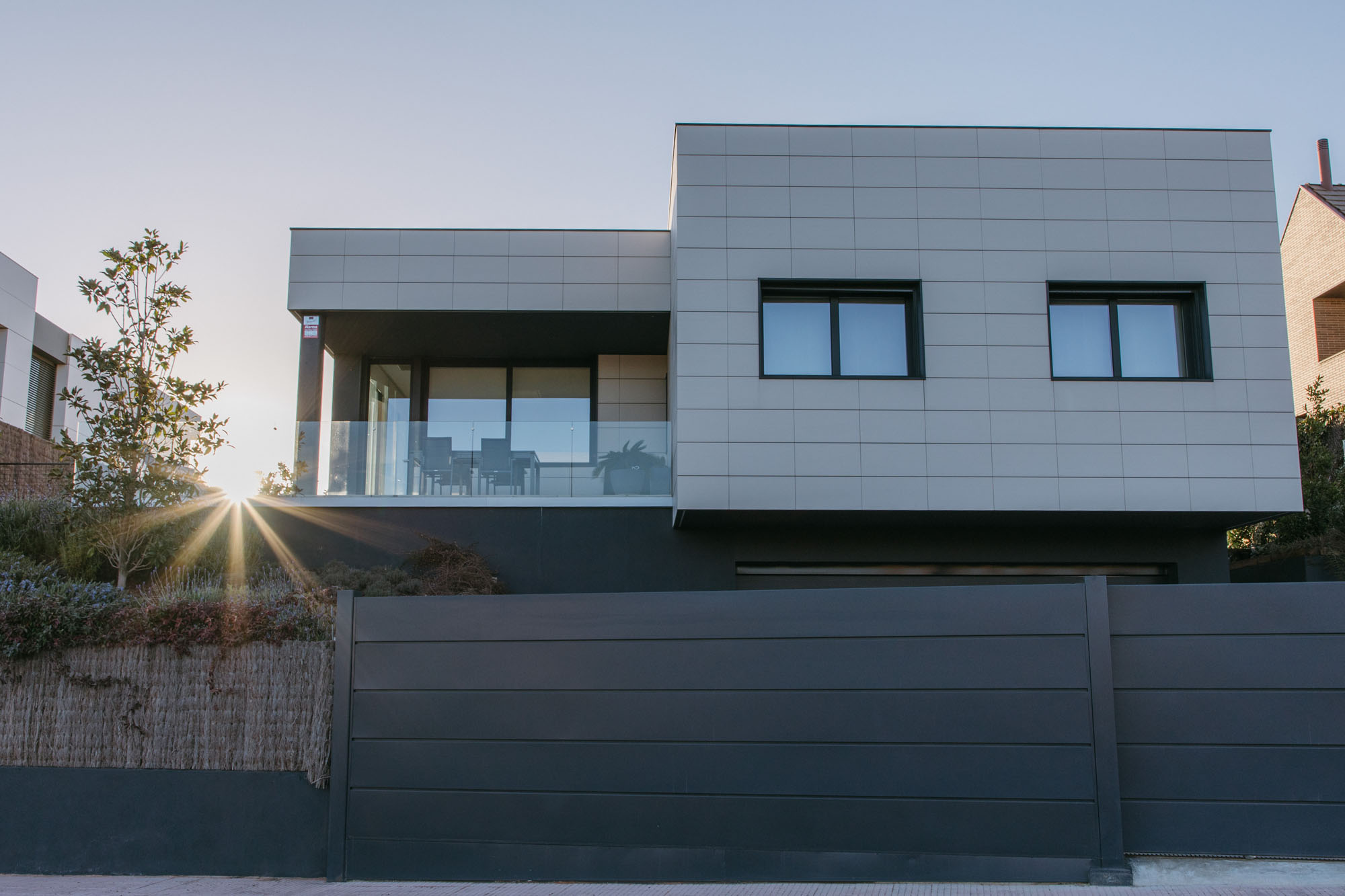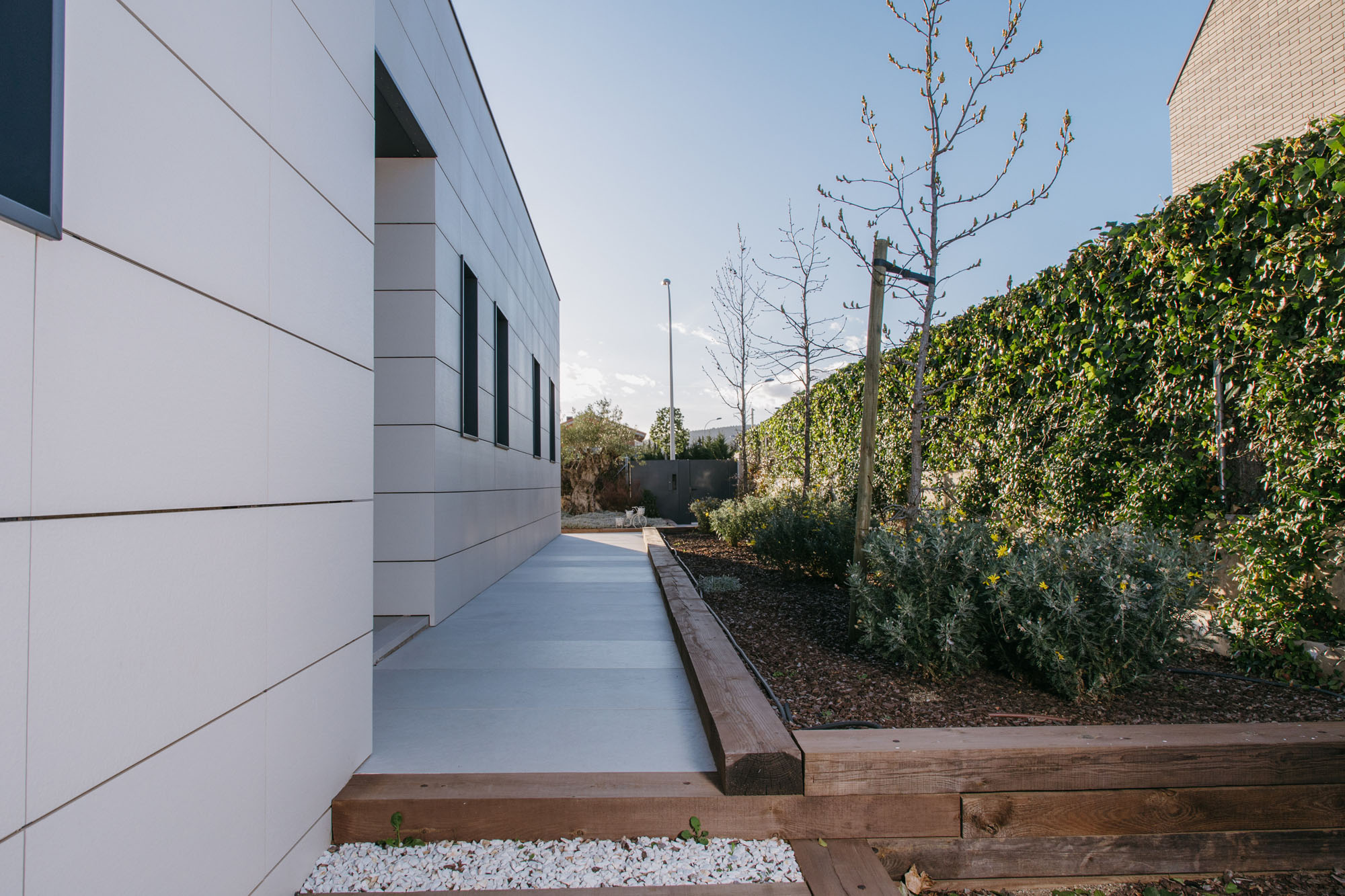 Situada a Matadepera, en una parcel·la de 860 m2 amb bona orientació, la propietat ens encarrega la construcció d’un habitatge en un sol nivell, energèticament efi cient i podent conservar les vistes a La Mola i a Montserrat. A part de l’habitatge, a la parcel·la s’hi projecta una piscina, un garatge soterrat amb espai per a tres vehicles, i es dissenya tot el jardí molt acuradament. El programa de necessitats i la demanda dels clients per a que tots els espais siguin exteriors, ens genera un gran volum, per simplifi car-lo s’ha dissenyant un jardí interior que ajuda a il·luminar tots els espais de l’habitatge, facilitant les circulacions, i inclús fent arribar llum natural al soterrani. El disseny de l’habitatge és estratègic i juntament amb la façana ventilada fan que la casa estigui en una temperatura de confort tot l’any i tingui una mínima demanda energètica inferior a 15 kW/ m² any. Algunes d’aquestes estratègies, ventilació creuada, voladís de protecció solar entre equinoccis, ens ajuden a aconseguir augmentar considerablement el confort de l’usuari.