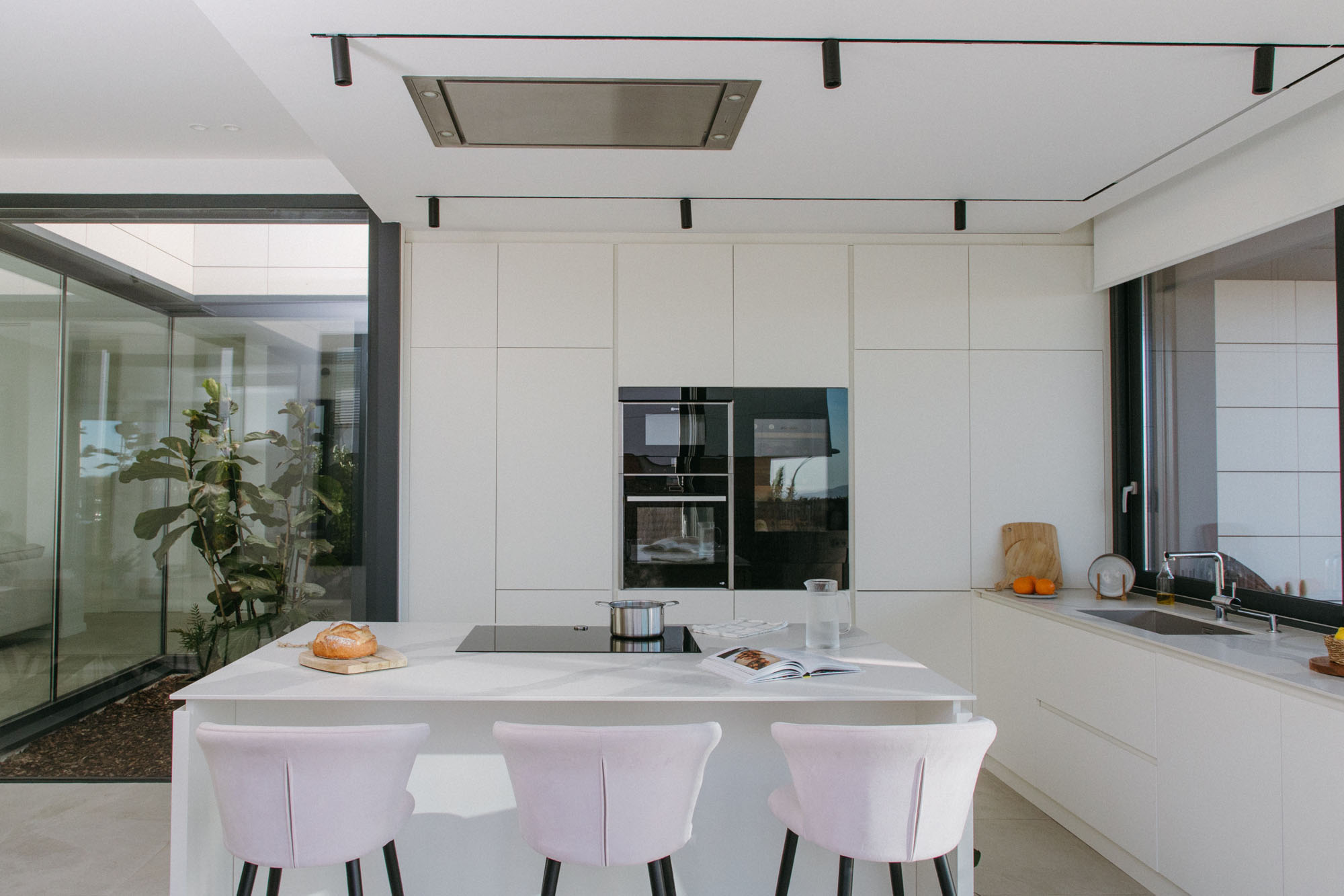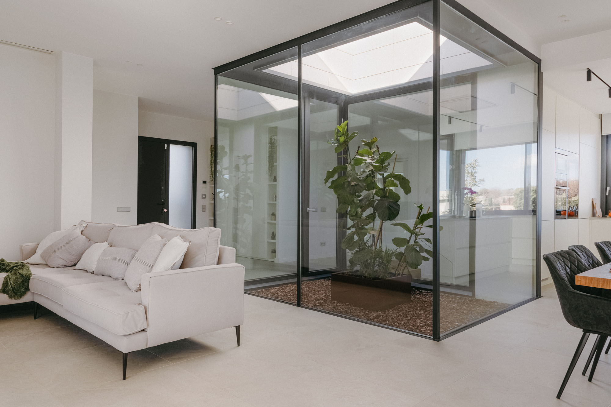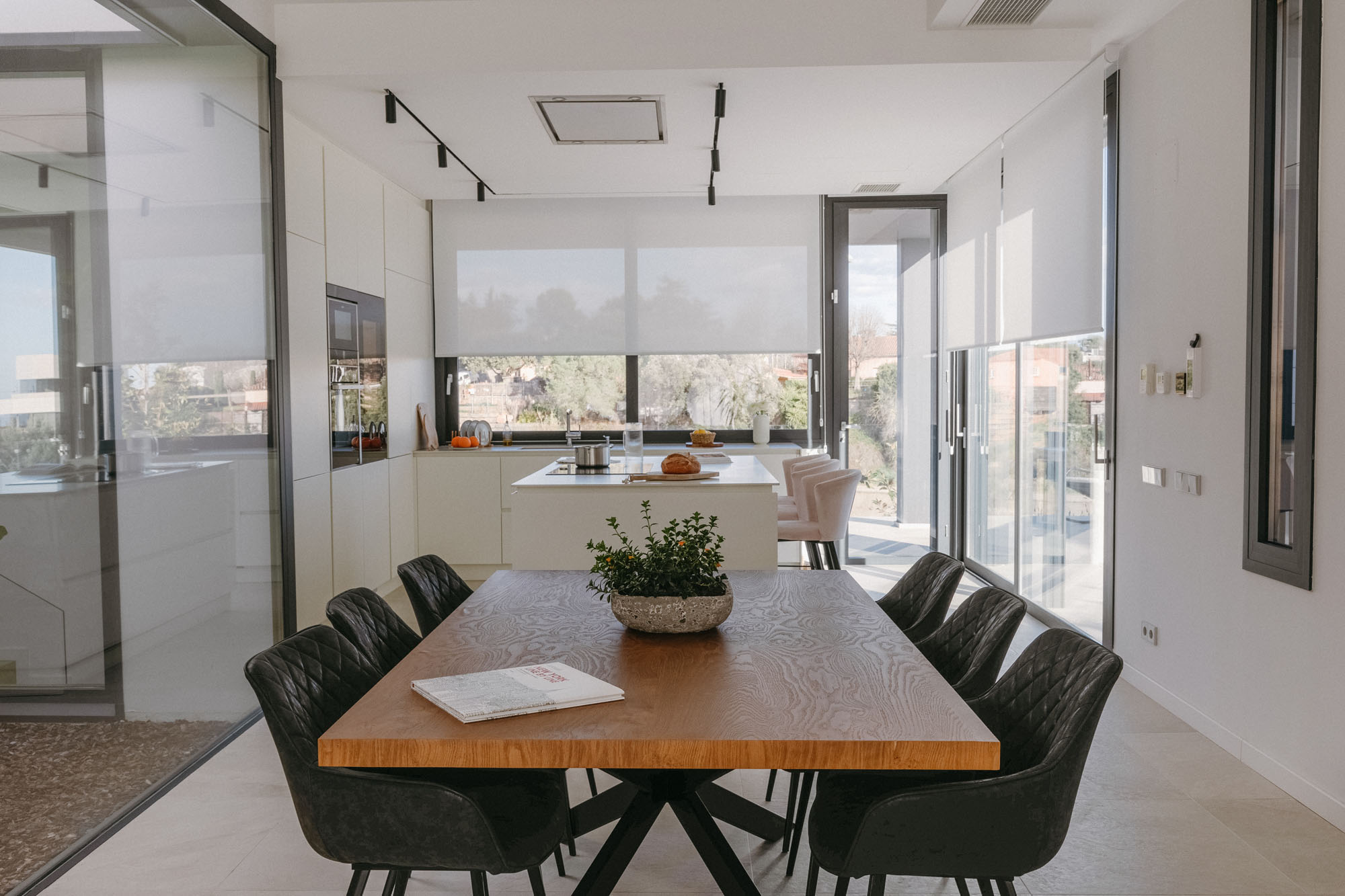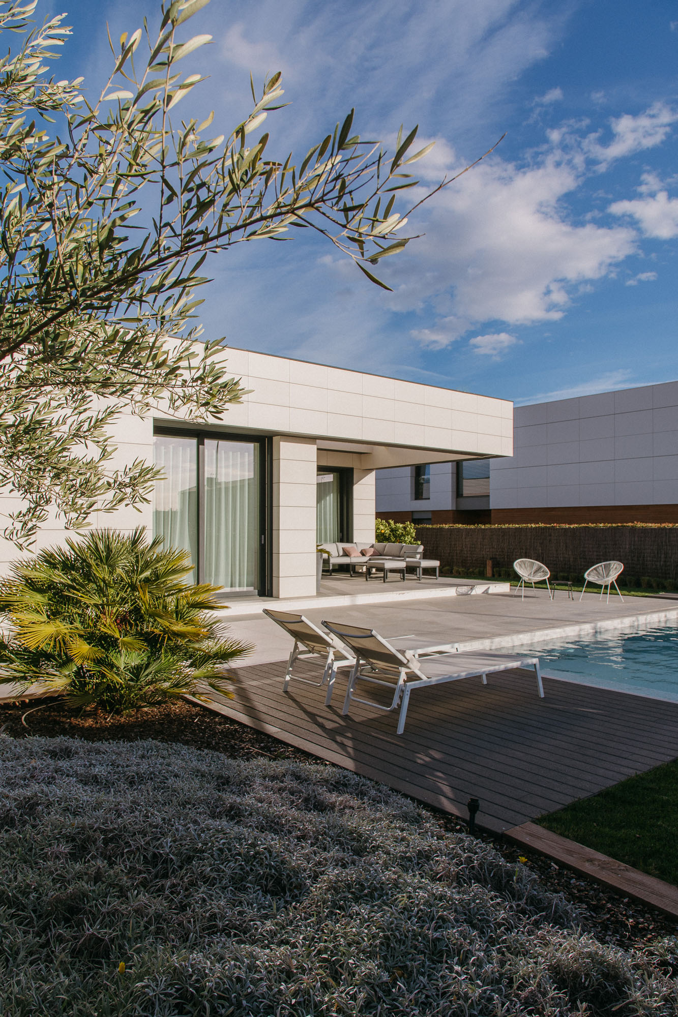 Situada a Matadepera, en una parcel·la de 860 m2 amb bona orientació, la propietat ens encarrega la construcció d’un habitatge en un sol nivell, energèticament efi cient i podent conservar les vistes a La Mola i a Montserrat. A part de l’habitatge, a la parcel·la s’hi projecta una piscina, un garatge soterrat amb espai per a tres vehicles, i es dissenya tot el jardí molt acuradament. El programa de necessitats i la demanda dels clients per a que tots els espais siguin exteriors, ens genera un gran volum, per simplifi car-lo s’ha dissenyant un jardí interior que ajuda a il·luminar tots els espais de l’habitatge, facilitant les circulacions, i inclús fent arribar llum natural al soterrani. El disseny de l’habitatge és estratègic i juntament amb la façana ventilada fan que la casa estigui en una temperatura de confort tot l’any i tingui una mínima demanda energètica inferior a 15 kW/ m² any. Algunes d’aquestes estratègies, ventilació creuada, voladís de protecció solar entre equinoccis, ens ajuden a aconseguir augmentar considerablement el confort de l’usuari.